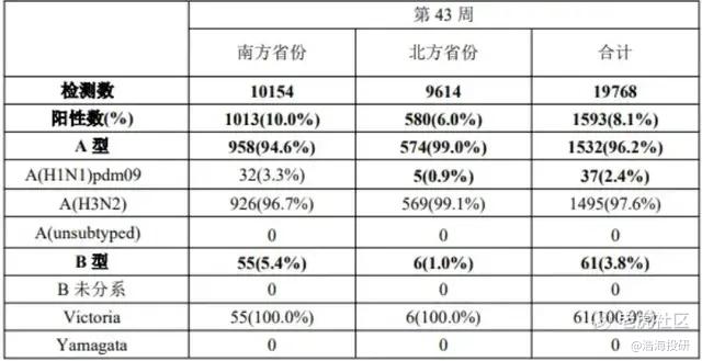 10月20日-26日流感样病例监测实验室检测结果 来源:中国疾病预防控制中心