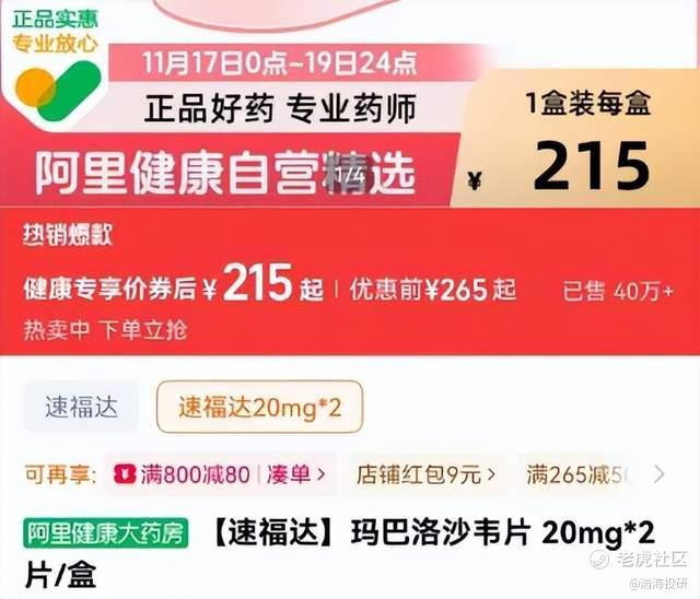 玛巴洛沙韦电商平台截图 来源:网络