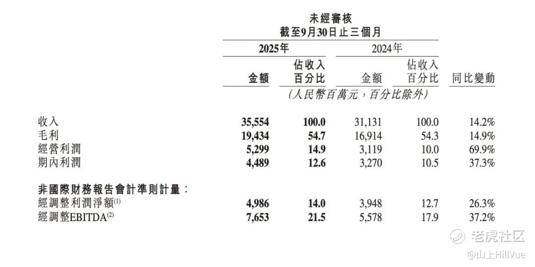 快手可能是少数几个例外,因为 AI 的贡献已经显著反映到财报上。昨日(11 月 19 日),快手发布 2025 年第三季度财报,当季营收增速再度创下一年以来新高,同比增长 14.2% 至 356 亿元。利润增速同样维持上升态势,当季经调整净利润同比增长 26.3% 至 50 亿元。