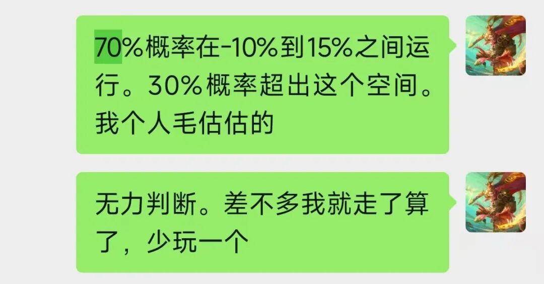 盘前我自己判断:70%概率在-10%到15%之间运行。30%概率超出这个空间。