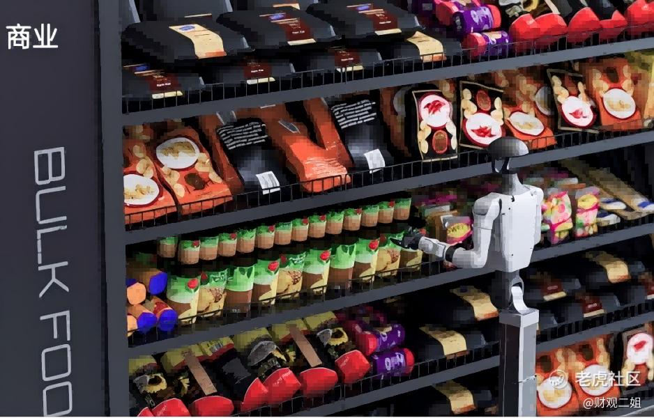 无独有偶,近日,作为行业领军企业的宇树科技推出了他们新一款轮式人形机器人G1-D,二姐发现其在官方网站上介绍的应用场景预想图里,也有类似的商业零售场景。