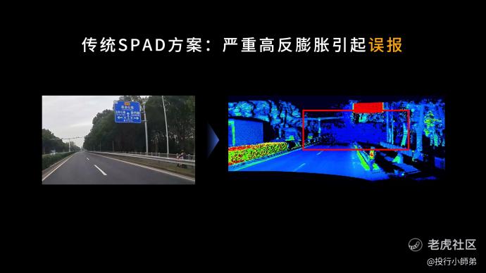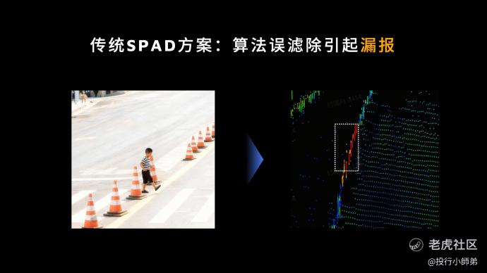 严重漏报:过马路的行人因为站在高反物体旁,被传统 SPAD 激光雷达误滤除