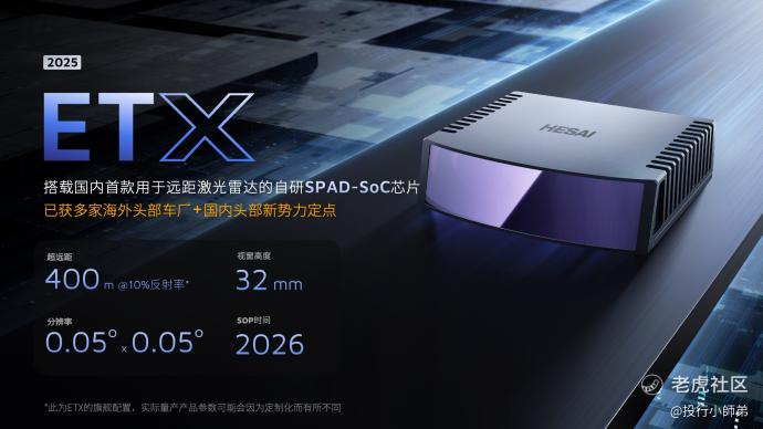 ETX 已获多家海外头部汽车厂和国内头部新势力定点;ETX+FTX「千厘眼 B」产品组合也斩获了市面上唯一的 L3 级乘用车激光雷达全家桶定点。
