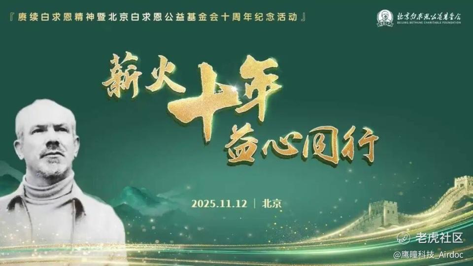 2025年11月12日,时值国际主义战士、加拿大共产党员诺尔曼·白求恩逝世86周年纪念日,“薪火十年,益心同行——赓续白求恩精神暨北京白求恩公益基金会十周年纪念活动”在北京举行,鹰瞳科技(Airdoc)作为公益领域爱心企业群体中的一员,共同见证了这份属于所有公益同行者的荣光时刻。