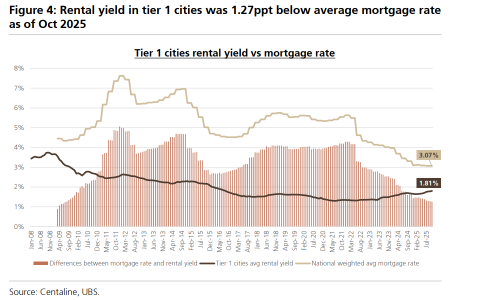 中国地产一线城市人口流入,但房价收入比还是偏高,租金回报率依然和按揭有差距