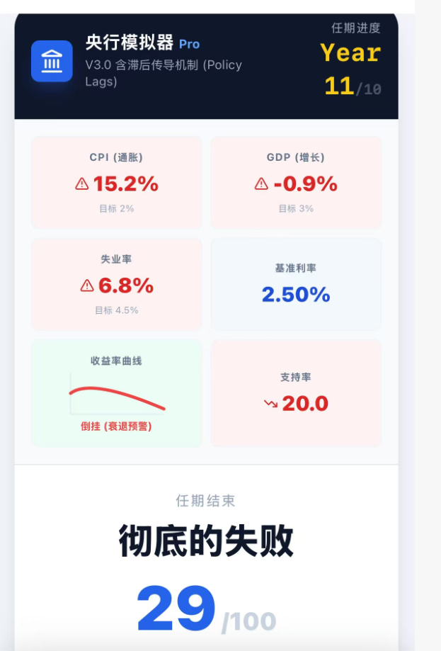 她是个极聪明的人,甚至远超过我,那么为什么她只拿了29分呢?因为当通胀和失业率一起高的时候,她一会想降低通胀,一会想降低失业率。