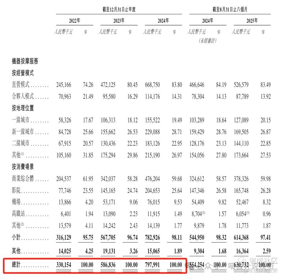 乐摩科技是中国领先的智能按摩服务提供商,通过“乐摩吧”品牌,在商业综合体、影院、交通枢纽等公共场所提供机器按摩服务。根据弗若斯特沙利文的资料,乐摩科技在2022年至2024年的三个连续年度,按交易额计在中国所有机器按摩服务提供商中排名第一,2024年市场份额为42.9%;按收入计,2024年公司在中国机器按摩市场亦排名第一,市场份额超过50%。