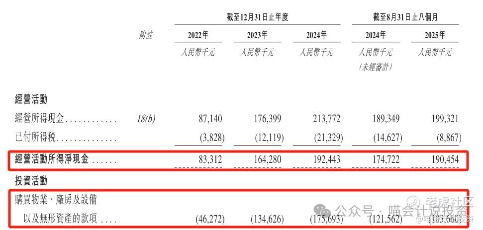 经营活动所得现金,略高于“买买买”。