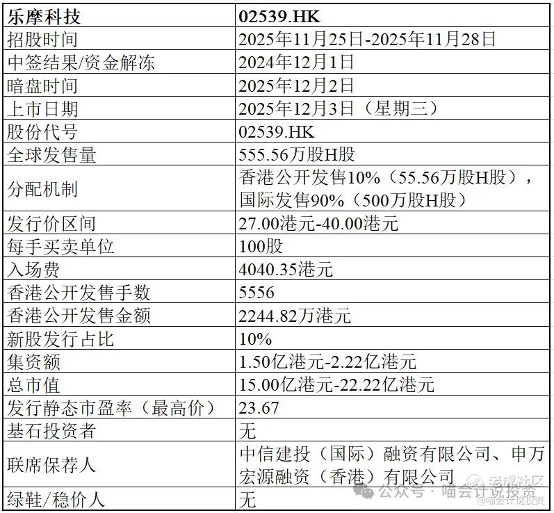 乐摩科技香港招股