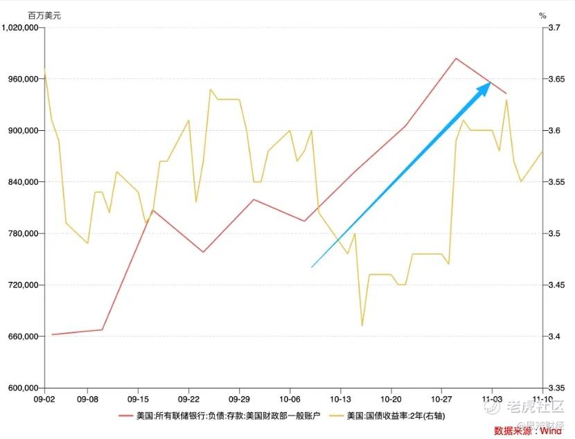 10月之后美国财政部一般账户余额有明显的增幅(接近万亿美元),这直接压缩了美债的市场价值(收益率攀升),流动性缺乏直接导致美股下行。
