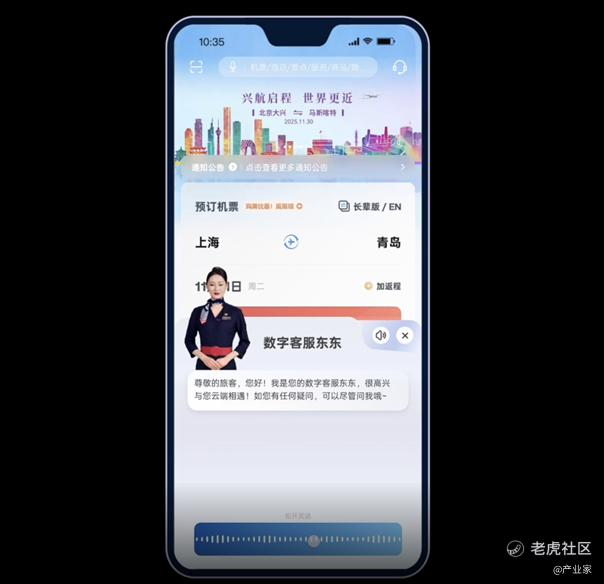 前几日,百度集团执行副总裁、百度智能云事业群总裁沈抖更是完整介绍了“东东”的全部能力,“如今东航已经把包括订票、选座值机、退改签等一系列航空的核心服务能力,内化到“东东”数字人智能体里,为用户提供出行的一站式服务。”