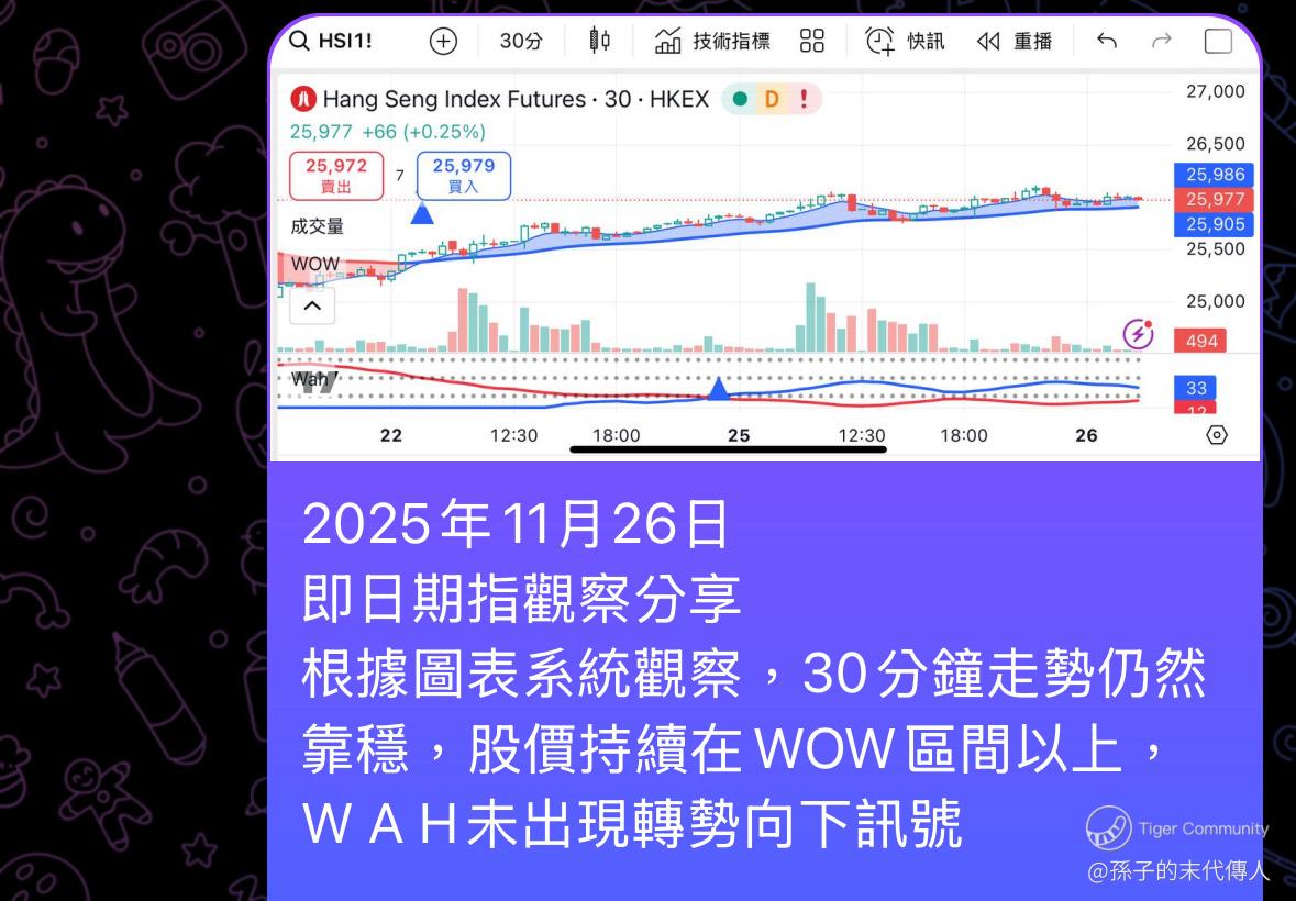 经历了上星期的急剧下跌之后,恒生指数终于在关键位置25,100附近出现反弹,再次挑战26,000的关键位置;未来若果不能够连续三天在26,000或以上守好,再跌穿25,800的话,那么大机会就会出现遇上阻力回吐的可能。留意对冲部署可能 $恒指瑞银八三熊F.P (55663.HK)$ ,防守位置放在26,200。相反,若果连续三天稳守26,000或以上,之后再次成功企突破26,200,大机会会持续上升 $恒指瑞银八十牛1.C (60814.HK)$ ,防守位置放在25,800。