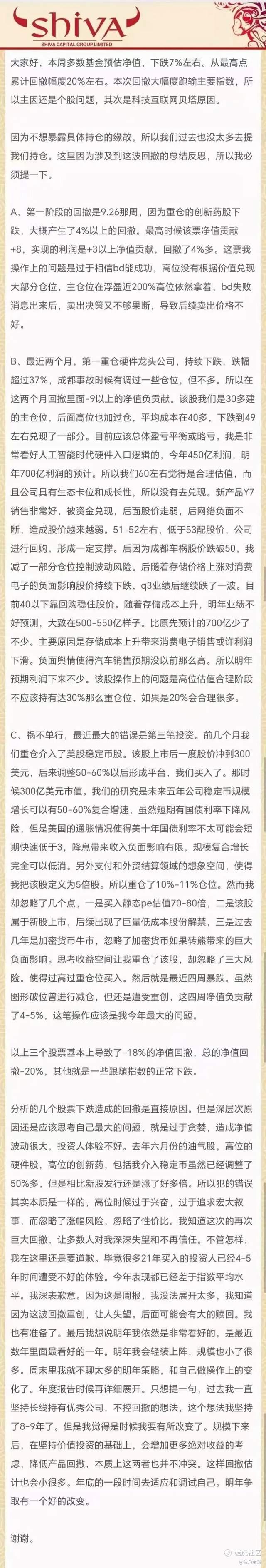 同时,他深知此次大幅回撤,让许多自2021年高位买入的投资人经历了长达4、5年的不佳体验,对其信任产生动摇,对此他“深表歉意”,并对可能到来的较大规模赎回已有准备。