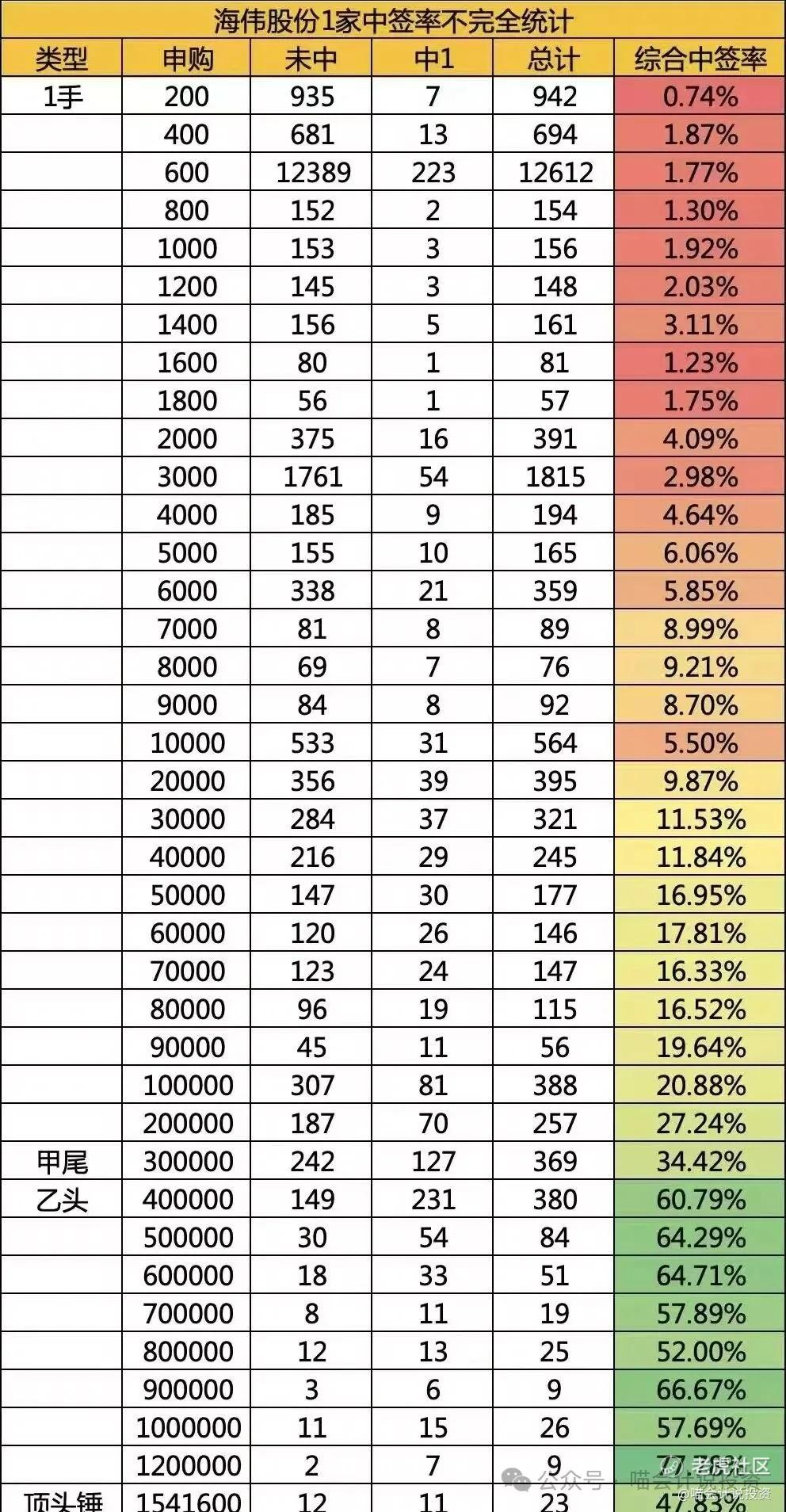 这是一家券商的不完全统计数据,看样子乙组这次搞的速降,也就是说乙组各档的中签率几乎是一样的!喵老师事前培训就喊了不要搞甲组,喊的是顶头槌,事后看乙头是最优的。