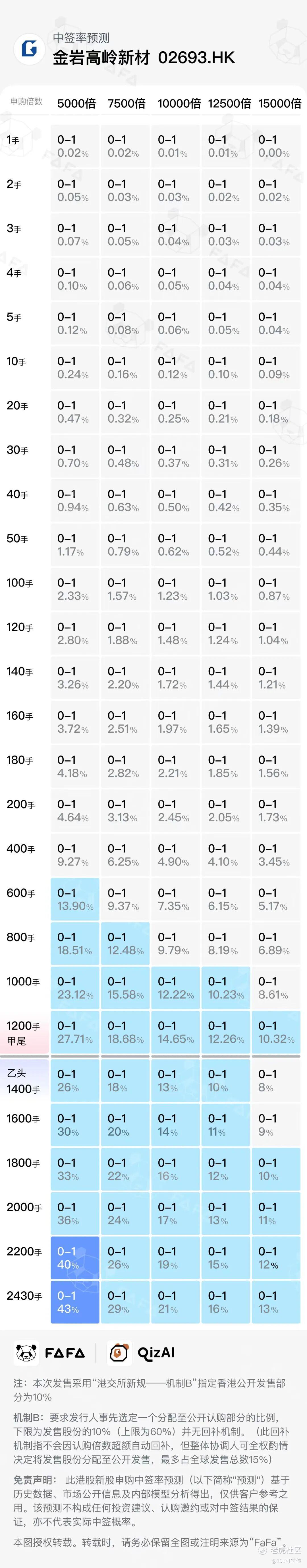 金岩高新此次采用机制B,回拨10%;全球发售2430万股,香港公开发售占243万股,共计4860手,比乐摩科技还要少,全员抽奖,预计一手中签率约0.5%,中签肯定也是吃肉的了;等海伟股份资金释放后,预计孖展会到6000倍左右。金岩高新发行后市盈率约为12.5倍,这一估值对比港股同行业原材料/矿业公司(通常8-15倍)处于合理区间。
