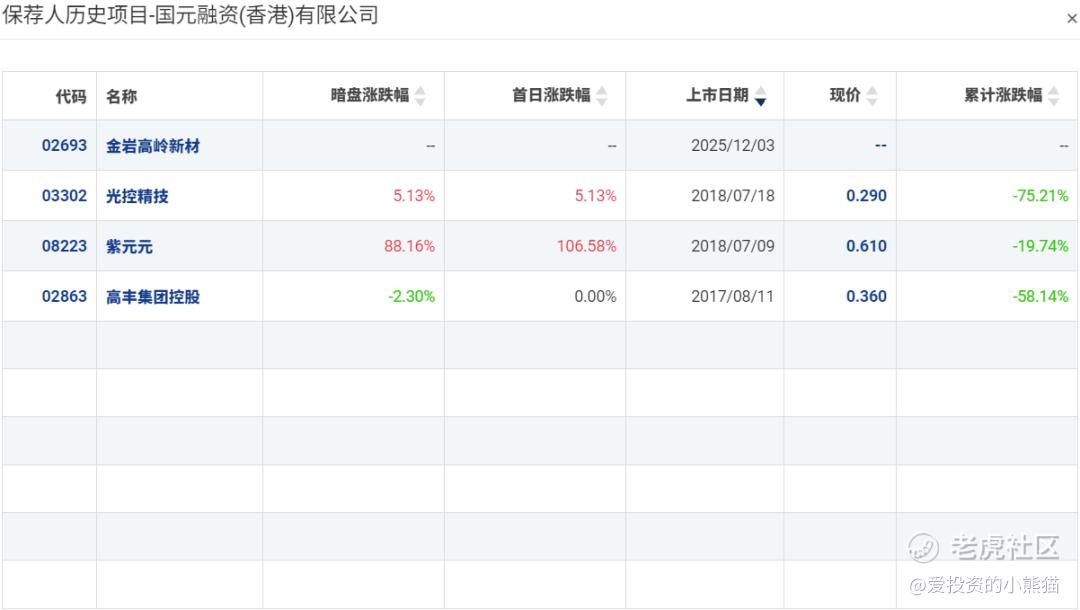 国元融资(香港)有限公司,国元保荐的项目不多,不过好在他们保荐的项目首日没亏过钱