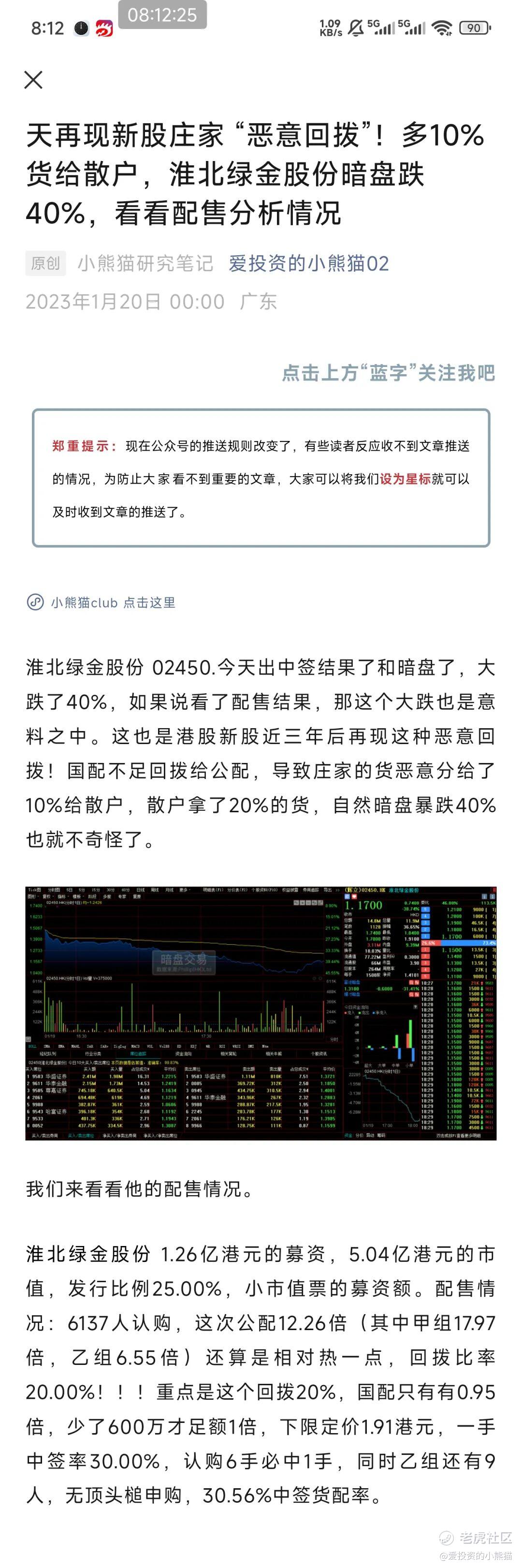 可能还不如人家几万的国配中得多!得益于之前散户一次又一次的举报闹腾,让回拨制度彻底变革,港股打新沦为机构的时代,多少人憧憬着以前美好的时光,已经回不到过去了。