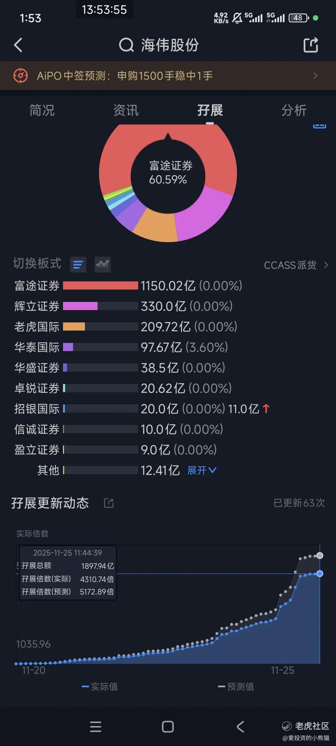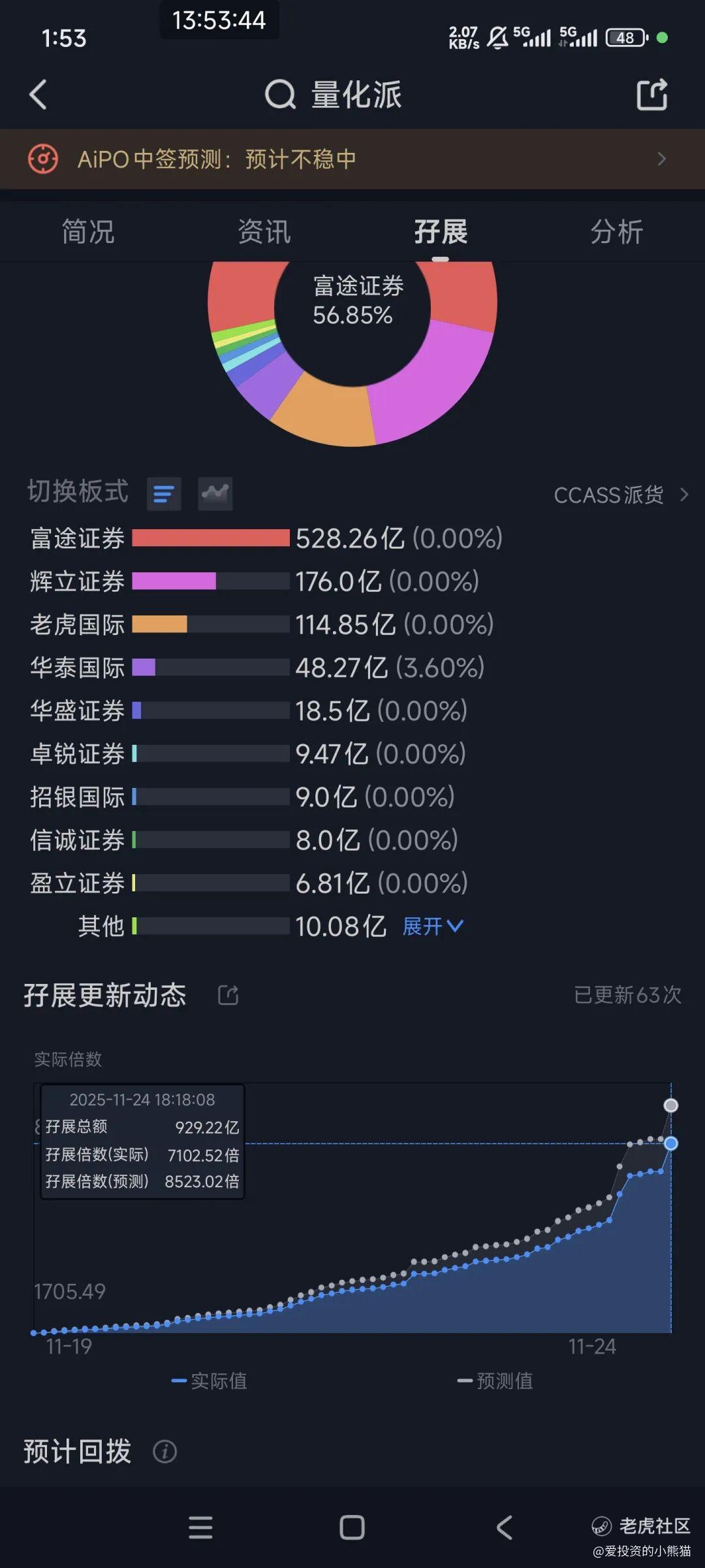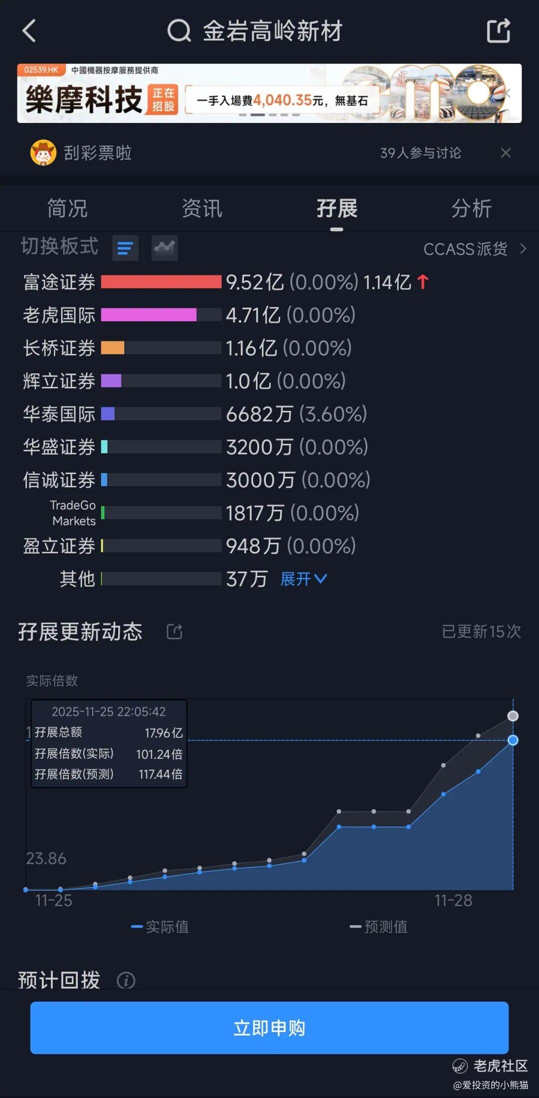 目前展现的孖展已超购101倍了,这个票总共才募资1.77亿港元,大概率最后要5000倍左右吧,前面一个募资1.3亿的量化派都已经7000倍了!就连募资4个亿的海伟都4000倍了!