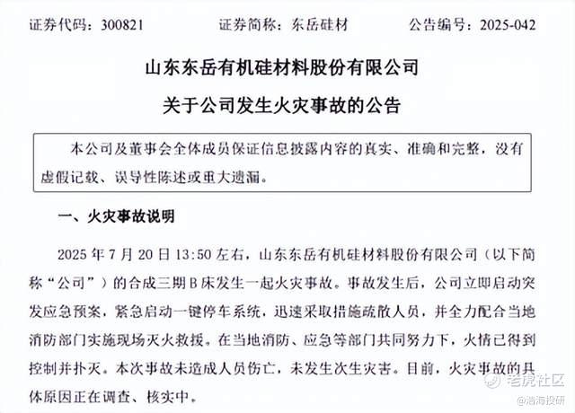 另一半,今年7月20日,东岳合成三期B床生产车间的火灾事故,直接导致30万吨有机硅单体产能停产,相当于公司总产能(60万吨/年)的一半。