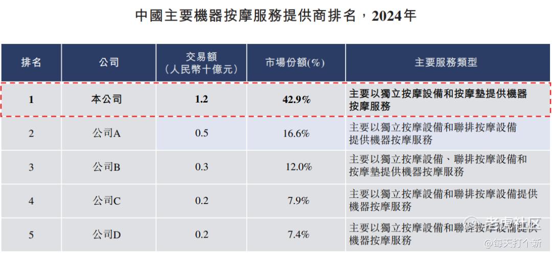 公司虽然本次IPO只有22亿(上限定价计),但却是中国共享按摩椅的绝对龙头,市占率达42.9%,相较其他市场参与者断档式领先。