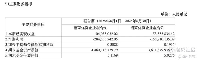 不过,今年7月18日,招商优势企业混合二季报显示,招商优势企业混合A实现收益1.04亿元,亏损2.85亿元;招商优势企业混合C实现收益5355.38万元,亏损1.59亿元。