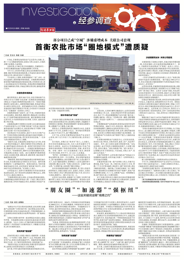 首衡集团的骗贷疑云,始于《经济参考报》记者经过实地走访与多方核实后披露的重磅调查结果,并于2025年6月24日刊发的《首衡农批市场“圈地模式”遭质疑》一文。