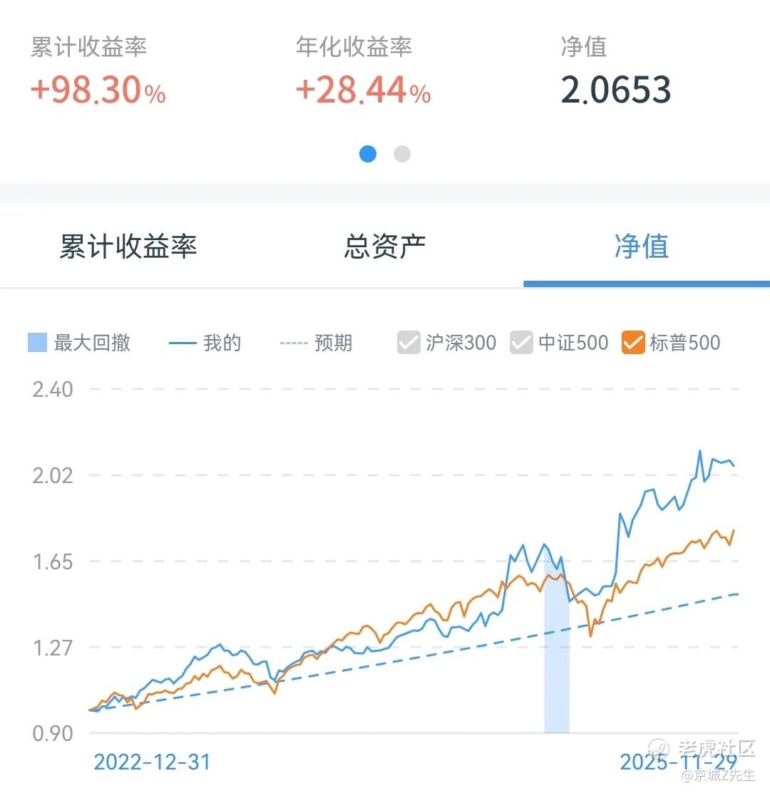 2025 年内标普 500 指数 上涨 16.45%,2025 年内我的实盘净值 上涨 28.92%(年初净值为1.60,本周净值2.07)。