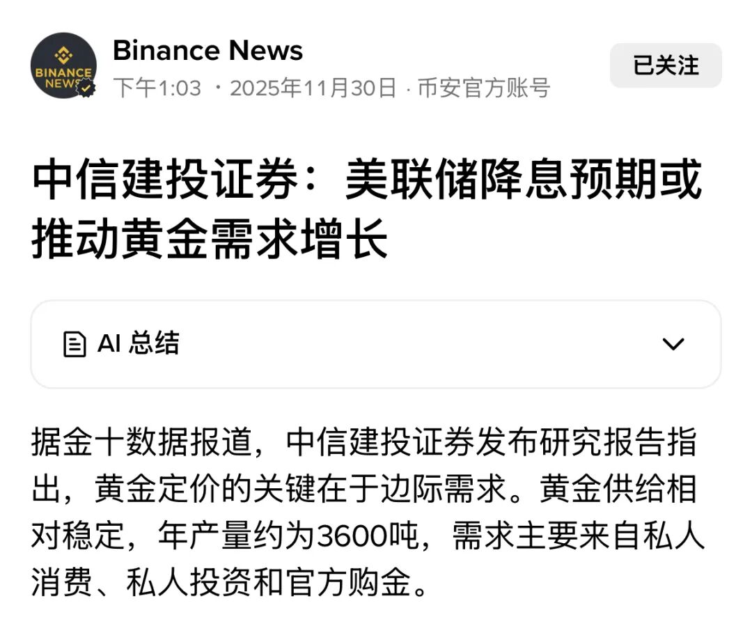 3. 中信建投证券指出,美联储即将降息或刺激黄金边际需求,黄金年供给约3600吨,市场需求主力来自私人消费、私人投资和官方储备。