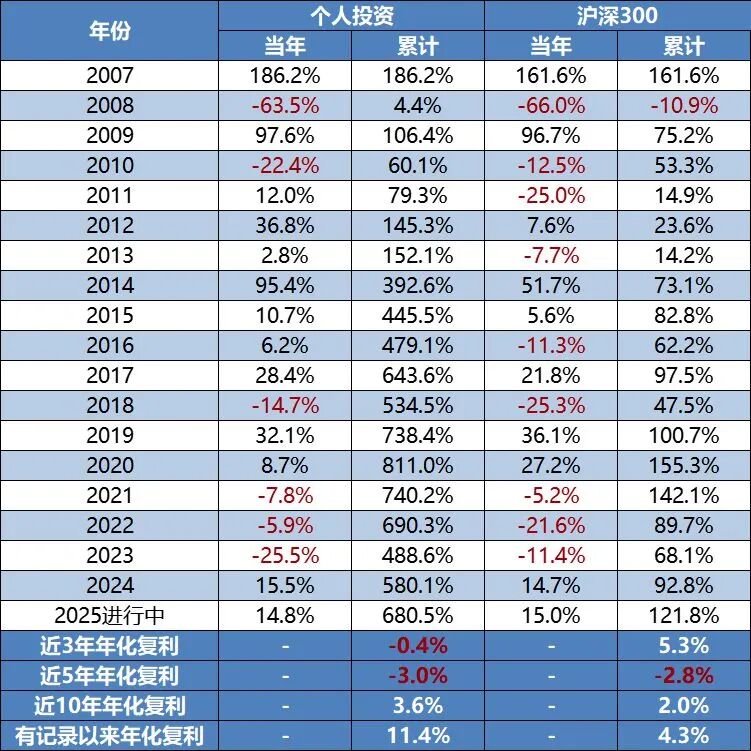 但3年还是太短了。看近5年的话,我和沪深300都是亏的。近10年的话,我略赢一些,但都很平庸。