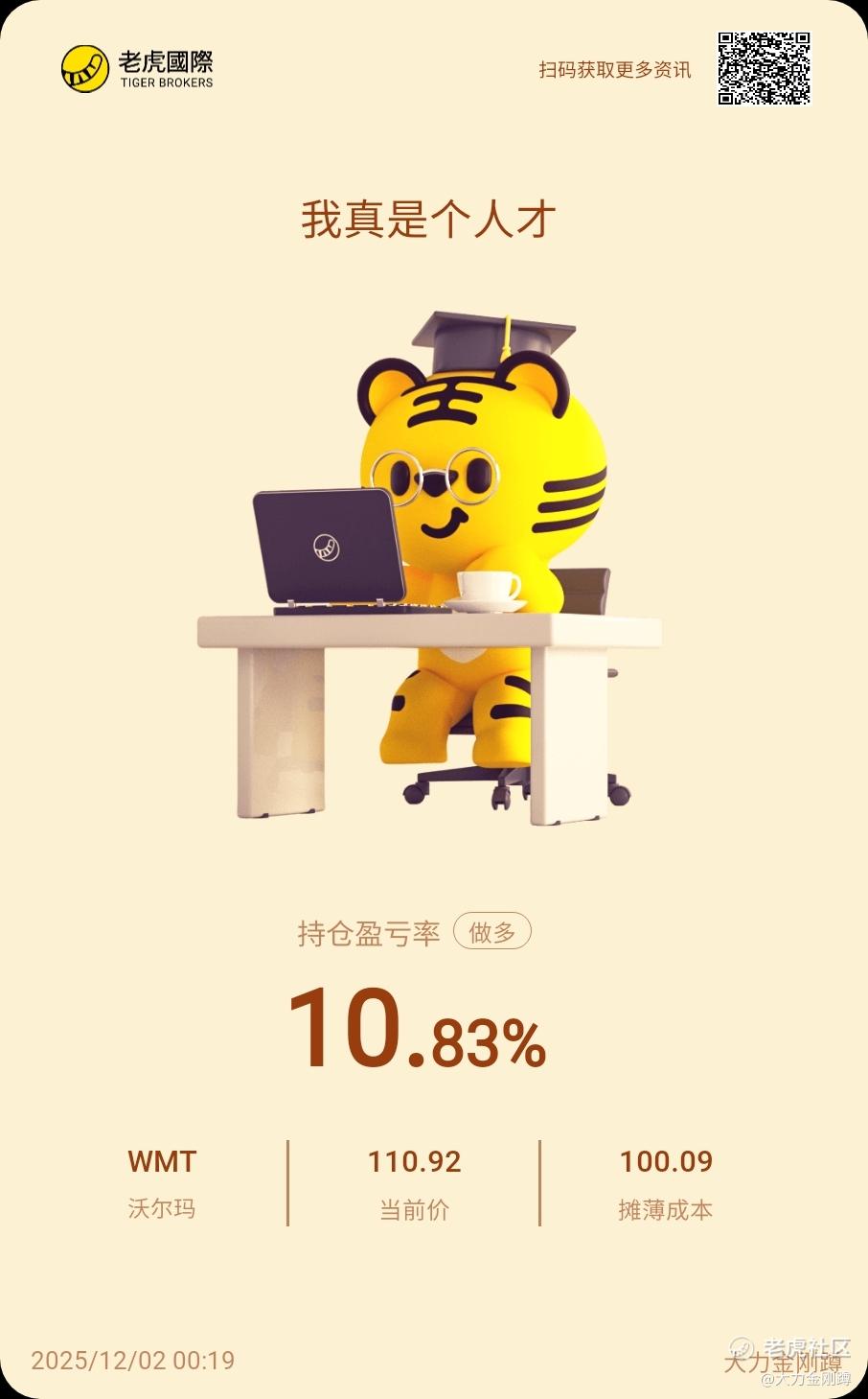 $沃尔玛(WMT)$ 目前看,前段时间买个年末行情的预期是对了。米国人民消费就是强,希望你们年底了,加油买买买。先拿到圣诞节。
