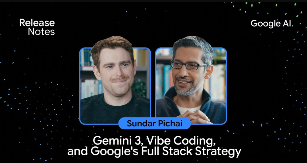 在11月26日接受Google DeepMind团队的Logan Kilpatrick采访时,谷歌CEO皮查伊详细阐述了谷歌如何利用全栈优势和长期布局承接这一轮爆发: