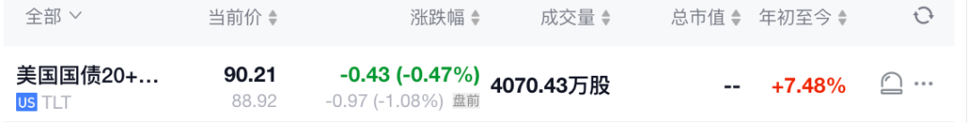 TLT盘前已经跌了1.08%。美债会受到一些冲击。
