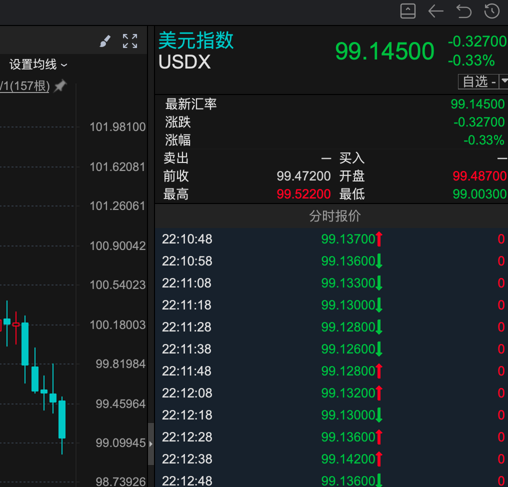 美元指数已经开始调整。