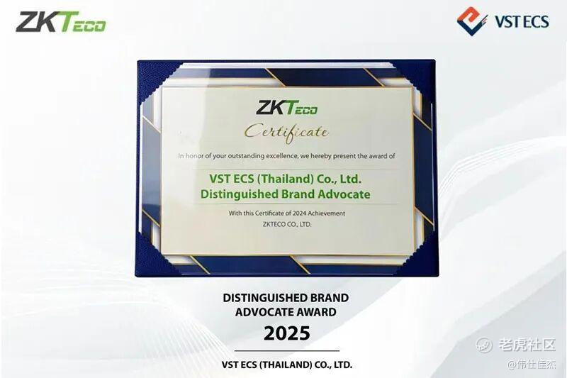 伟仕佳杰(泰国)荣获ZKTeco 2025年度杰出品牌倡导者奖