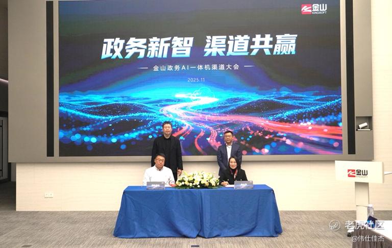 11月11日,金山政务AI一体机渠道大会在北京举办。会上,伟仕佳杰正式签约成为金山政务AI一体机全国总代理。金山政务AI一体机为金山集团旗下两大核心业务板块金山云、金山办公共同推出,产品集AI算力资源、政务办公大模型、智慧办公应用于一体,构建了“国产算力+私有化AI”的双融合模式,实现一站式的党政办公智慧化赋能创新。作为金山办公WPS的重要战略合作伙伴,伟仕佳杰见证并参与了国产办公软件的崛起与发展。此次签约金山云政务AI一体机,是伟仕佳杰在政务AI领域的重要布局,双方将携手通过“金山政务AI一体机”,积极推动党政机关办公智能化进程,为数字政府的高质量发展贡献力量。