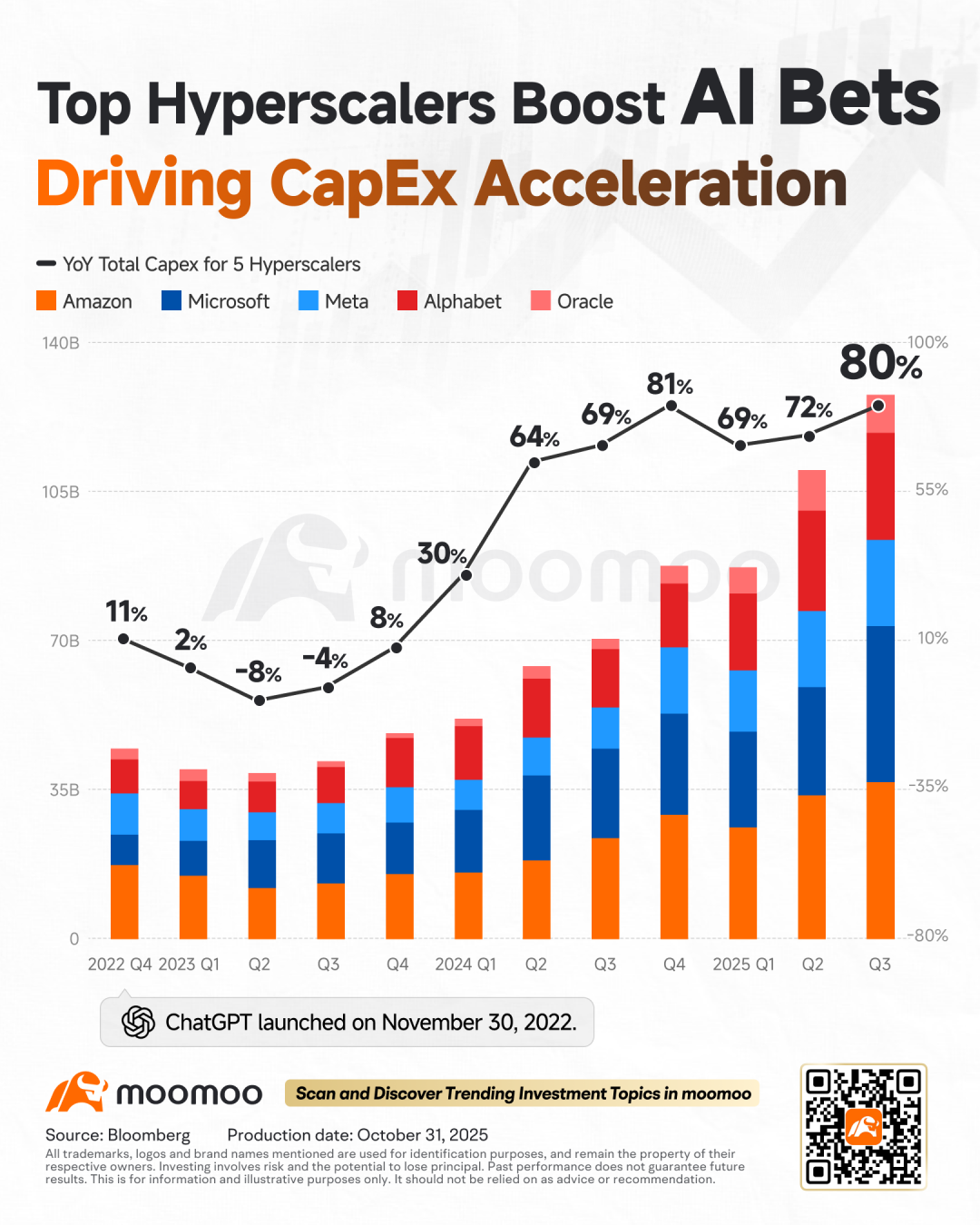 管理层预计算力供给不足将持续至2026年,2025年capex 850亿美元指引上调至910-930亿美元,预计2026年capex仍将大幅增长。