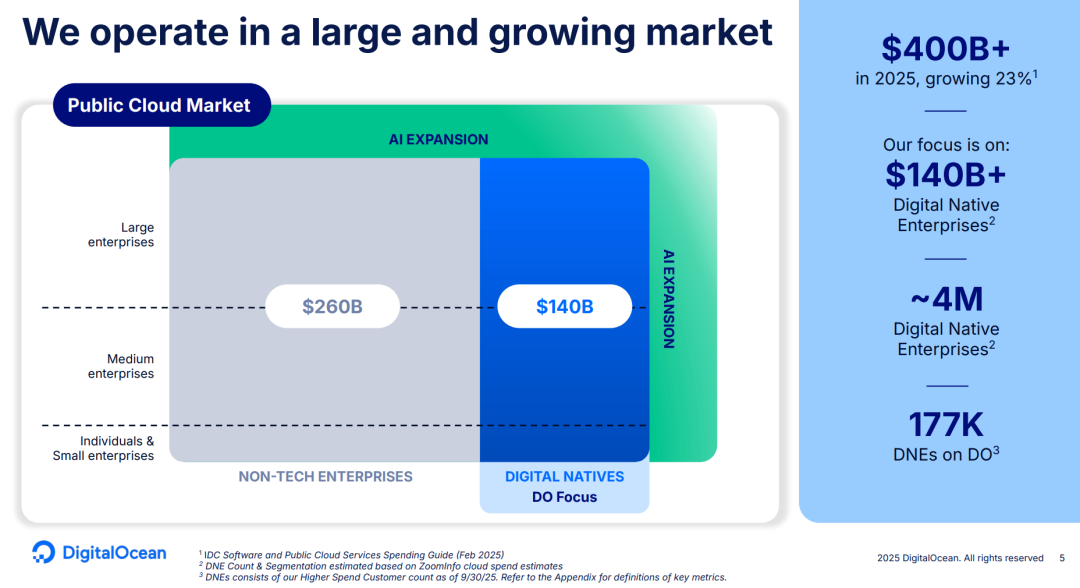 DigitalOcean明显特点是客户主要以中小企业为主,对宏观经济周期非常敏感。此前曾提到在AI云计算浪潮中,面对诸如CoreWeave、Nebius等新势力的崛起,传统云计算小公司DigitalOcean可能有点行动缓慢,去年10月1日才开始给所有客户开放H100实例,11月初才推出公司首款AI产品GenAI Platform,目前已上线H100、H200、MI300X、MI325X实例。优点是现阶段相对于明星Neocloud,其杠杆率比较低。