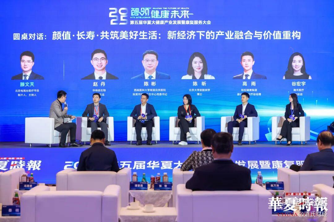 本次大会以“智领健康未来”为主题,在《颜值·长寿·共筑美好生活:新经济下的产业融合与价值重构》的圆桌对话环节,雍禾医疗集团投资者关系总监谷宏宇与华得森生物学术总监赵丹、西南医科大学附属自贡医院自贡市精神卫生中心党委书记陈彬、北京大学皮肤病学博士陈昕、轻松健康集团副总裁、医疗总经理高雨共同探讨了新经济下的产业融合与价值重构这个话题。