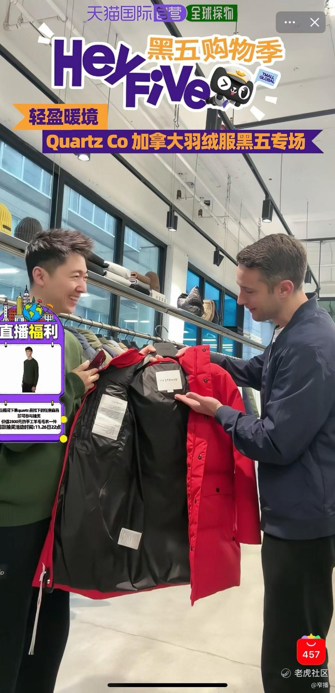 11月26日晚9点,在加拿大的蒙特利尔,被时髦买手们视为「下一个加拿大鹅」的羽绒服品牌Quartz Co,通过天猫国际全球探物的直播间,完成了面向中国消费者的直播首秀。