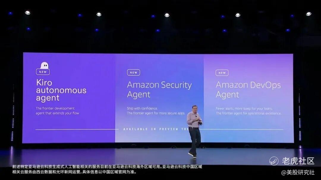凭借过去生成式AI的积累,亚马逊云科技推出三大“前沿Agent”:Kiro;Amazon Security Agent;以及Amazon DevOps Agent。它向市场展示了一个核心观点:未来的AI竞争,不是模型之争,而是生产力系统之争。这将决定亚马逊云科技未来增长曲线。