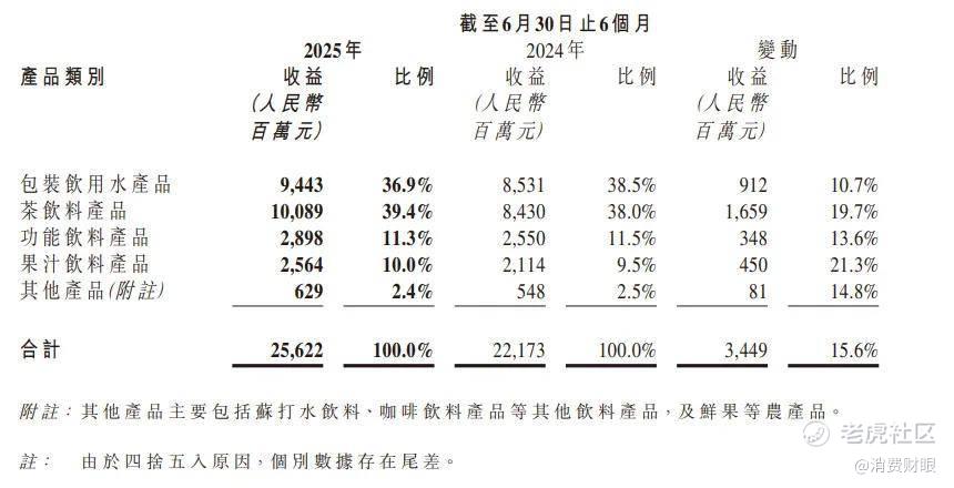然而,就在这片行业增长的“逆流”之中,农夫山泉旗下的东方树叶却逆势划出了一道强劲的增长曲线。据公司中期财报显示,2025年上半年东方树叶销售额已突破80亿元,以高达75%的市场份额,稳坐了全国无糖茶市场的绝对龙头地位。农夫山泉的茶饮料板块,也首次超越饮用水产品,突破百亿元成为营收最大的业务。其中东方树叶一款产品就贡献了超过七成收入,成为公司首个达成“半年百亿”战绩的大单品。