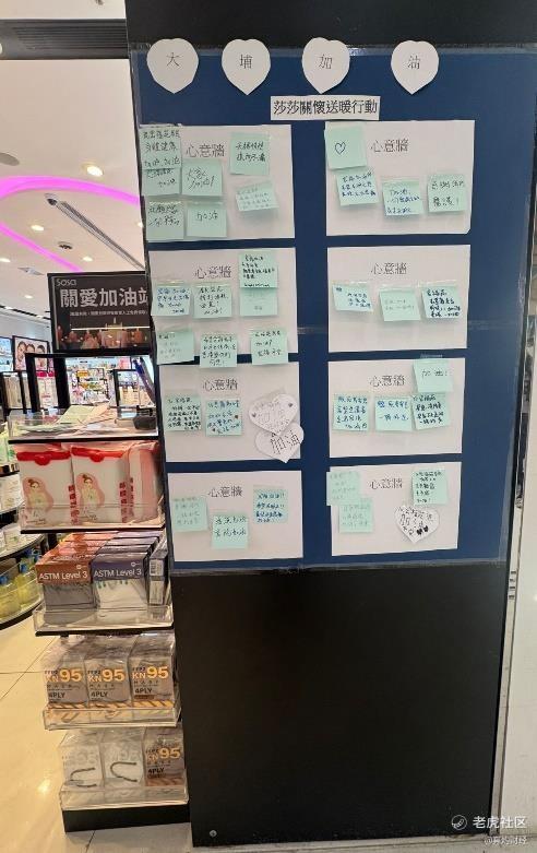 莎莎大埔新达分店爱心墙向大埔受影响的居民送上鼓励和祝福。