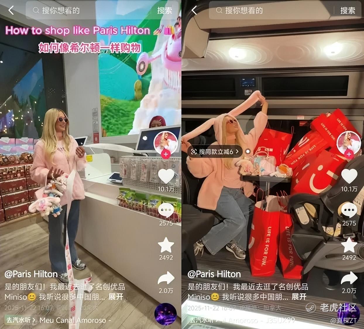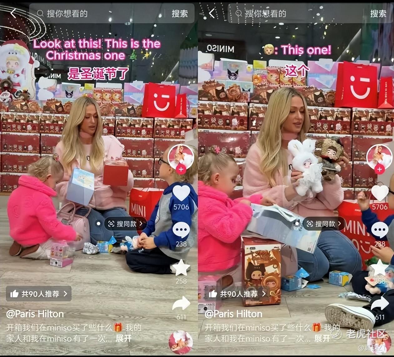还有很多外国明星,也在MINISO疯狂“买买买”——希尔顿家族成员、名媛帕里斯·希尔顿在MINISO洛杉矶店一次性花了4000美元豪购,小票摊开来比身边一米八的保镖还要高。