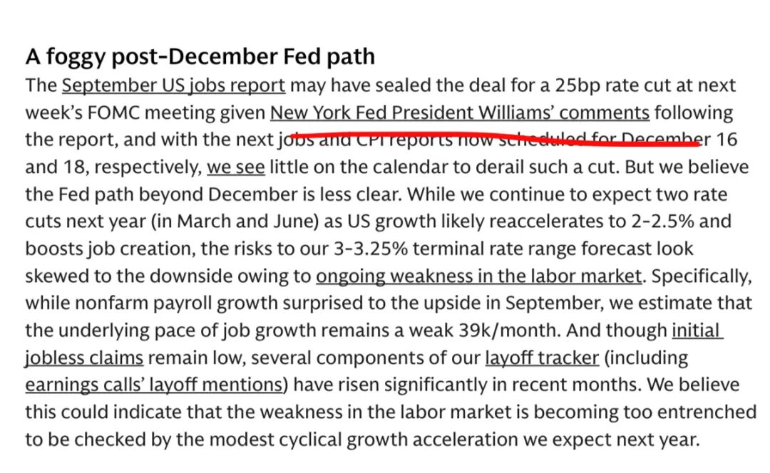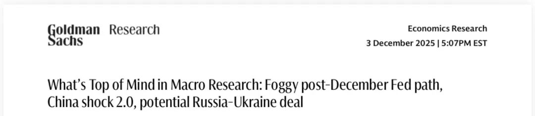 高盛(Goldman Sachs)12月3日发布最新宏观研究报告《What's Top of Mind in Macro Research》,核心聚焦美联储降息路径。