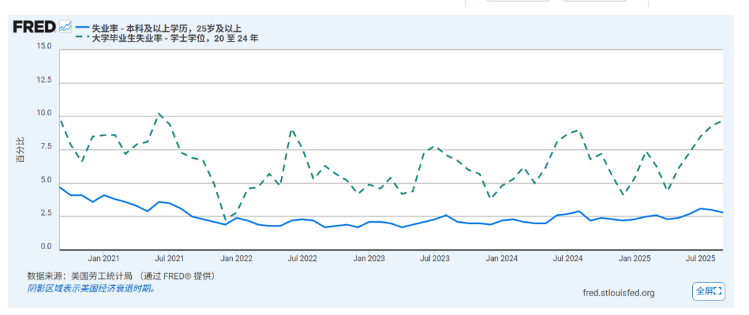 对于20-24岁大学毕业生群体,失业率更是攀升至惊人的9.2% ,比2022年低点高出70% 。