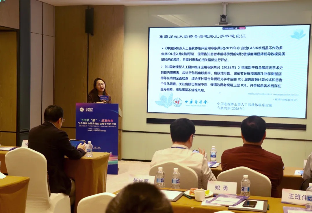 在学术讲座环节尾声,张秋丽教授围绕“角膜屈光术后白内障手术规划与 I0L 选择”这一临床议题展开深度分享,从术前、术中、术后全流程梳理诊疗要点,为眼科医务工作者优化角膜屈光术后白内障诊疗方案、提升患者诊疗效果提供了重要参考。