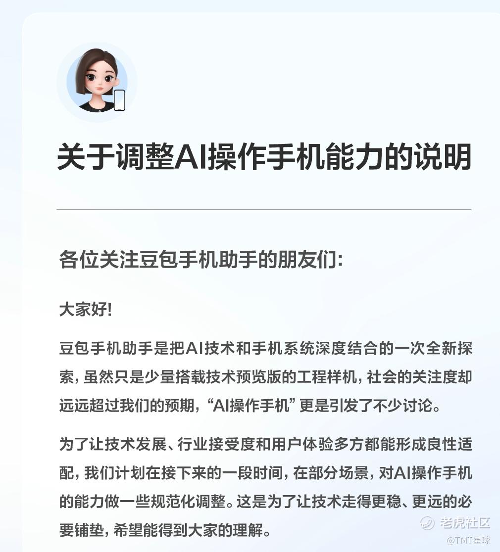 豆包手机助手将部分调整AI操作能力,与厂商共同制定清晰准则