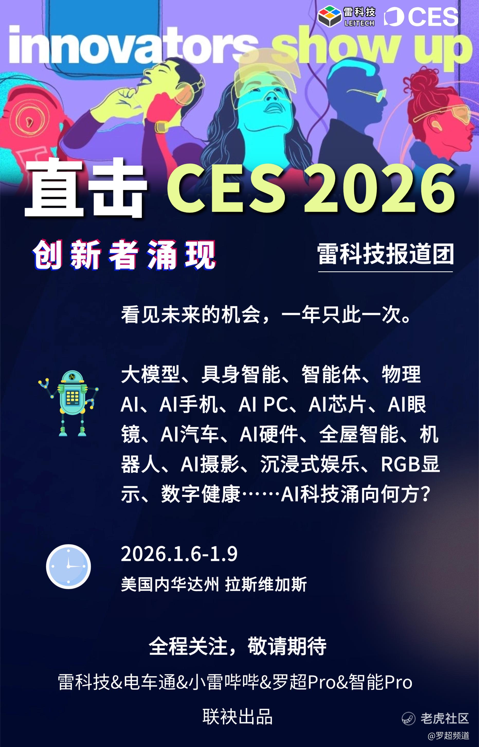 作为中国报道科技展会最悠久、最深入、最专业的新媒体,雷科技CES2026报道团正在进行紧张的前期筹备。届时雷科技将派出史上最大规模的CES报道团,并由雷科技创始人兼总编辑罗超带队,对CES2026进行一线、专业和立体报道,敬请期待!