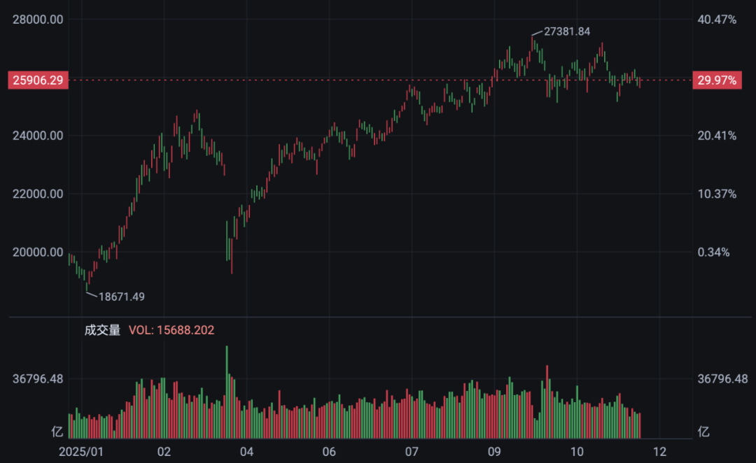 像恒指今天收盘位接近26000点,年内仍有着30%的涨幅,看走势可以清晰看出,现阶段还处于高位附近。在26000点附近震荡总比前两年长期在20000点之下好很多倍吧?