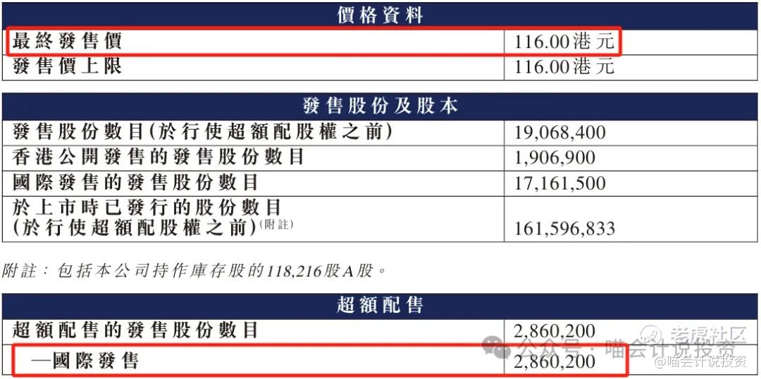 发行区间最高价116港元定价!超额配售15%用足,多发了286万股!字里行间透露着发行人对每一分资金的渴望!